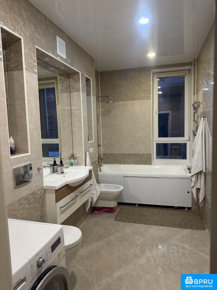 Просторная светлая трехкомнатная квартира Сдается на долгий срок Квартира расположена на 9 этаже 18-этажного дома с высокими потолками 3 метра, что создаёт ощущение простора и свободы. Квартира имеет дизайнерский ремонт и полностью оборудована всем необходимым для комфортной жизни. В кухне есть современная мебель и техника: холодильник, посудомоечная машина, кондиционер. В комнатах также имеется мебель, что позволит вам комфортно устроиться с первого дня. Санузел совмещённый, оборудован ванной. Окна выходят как на улицу, так и во двор, что обеспечивает хорошую освещённость. Дом оснащён двумя лифтами: пассажирским и грузовым, а также имеет наземную парковку. Для удобства жильцов предусмотрен пандус, поэтому можно комфортно передвигаться с колясками и велосипедами. Район предлагает развитую инфраструктуру: поблизости расположены школы, детские сады, клиники и магазины. Всё необходимое для жизни в шаговой доступности. Залог 60 тысяч рублей. Квартира идеально подойдёт для семьи или пары, которые ценят комфорт и стиль.