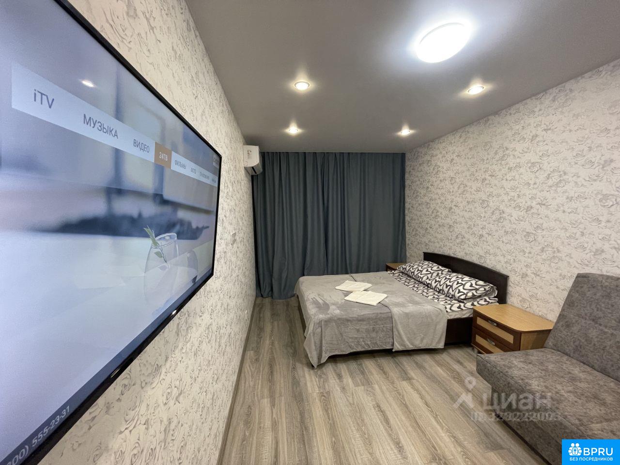 Сдаётся уютная и светлая квартира. В квартире есть всё необходимое для комфортного проживания: -Кухня: духовой шкаф, варочная поверхность, СВЧ печь, чайник, холодильник, стол со стульями и т.д. -Санузел: стиральная машина, гладильная доска, сушилка для белья, полотенцесушитель и т.д. -Комната: кровать, тумбы прикроватные, кондиционер, диван, телевизора нет (можно установить свой). -Прихожая: шкаф и т.д. Квартира чистая, готова к заселению. Удобное расположение, рядом ТЦ Семья, ТЦ Июнь, Меги, остановки общественного транспорта, всё в шаговой доступности.