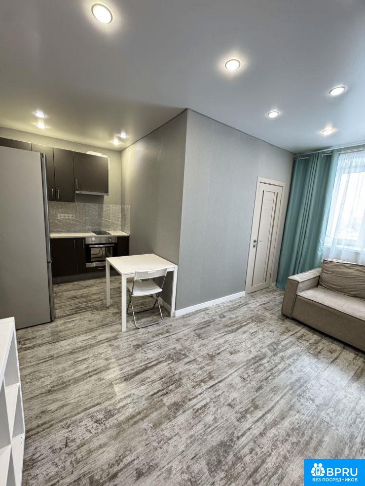 Сдается студия с дизайнерским ремонтом в монолитно-кирпичном доме комфорт класса 2025 года постройки. Новый дом с огороженной охраняемой территорией, детской площадкой и вместительной парковкой. Вбл