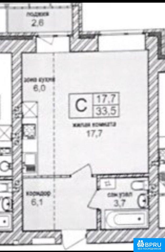 Квартира-студия, 33 кв.м