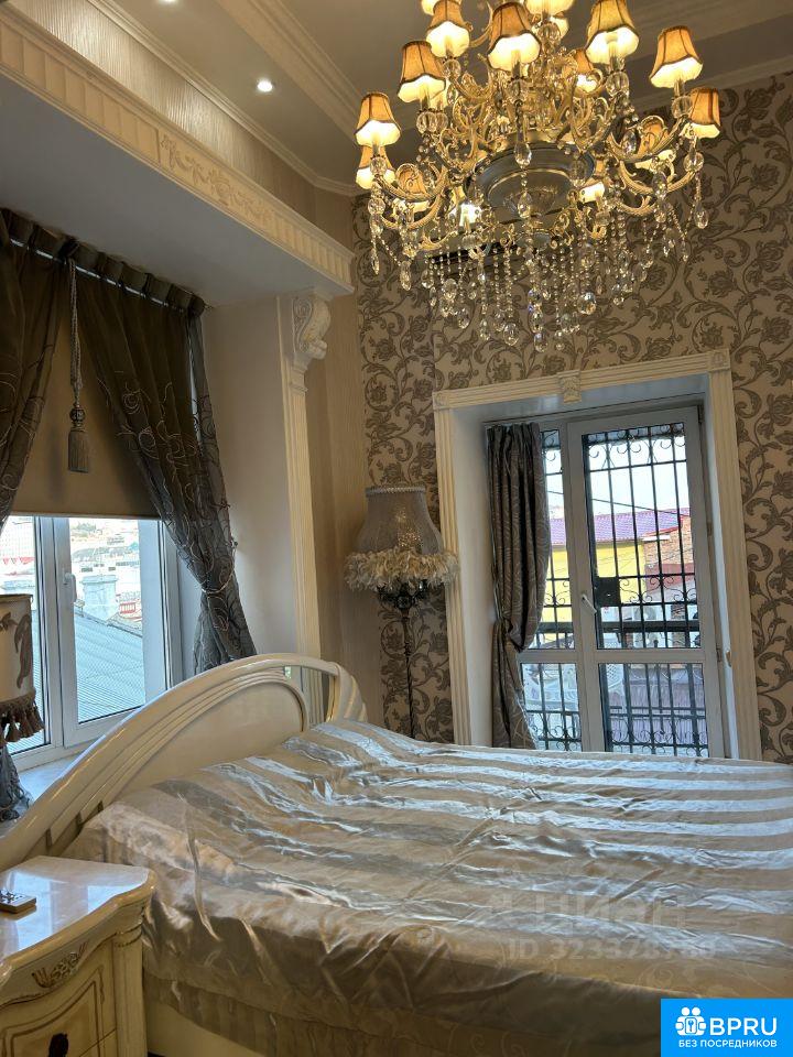 Трехкомнатная двухуровневая квартира в самом центре города в историческом Доходном доме Мешкова , построенном в стиле Модерн. Площадь с учетом второго уровня 85 кв.м. Балкон 6 метров. Сделан дизайнерский ремонт в классическом стиле, большой балкон с видом на старый город и Золотой мост, большой зал , спальня, детская, на втором уровне дополнительно детская спальня, джакузи, потолки 4 метра. Полностью меблирована, два дивана, две двуспальные кровати, два телевизора, вся бытовая техника, два шкафа-купе, три встроенных шкафа. В минутной доступности Миллионка, набережная, пляжи, центральная площадь. Рядом 13 школа с английским уклоном, все рестораны, кафе, магазины, транспорт. интернет, вай-фай, ТВ Ростелеком. Залог 80000, собственник.