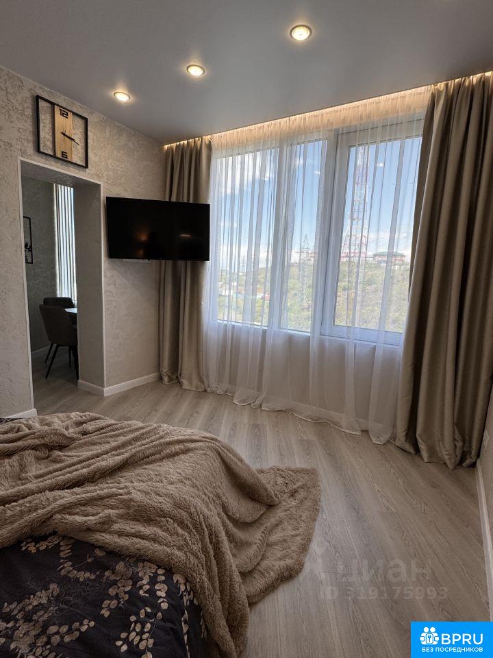 Новая квартира с дизайнерским ремонтом. Юго-восточная сторона, теплая, солнечная. Сдаётся впервые. Полностью укомплектована новой мебелью и бытовой техникой и готова для проживания (посуда, кухонные принадлежности, постельное белье на 4 человек, гель для душа, жидкое мыло, шамнунь, кондиционер, набор средств для стирки и уборки, халаты, тапочки, набор полотенец и т.п.). Интерактивное телевидение и Wi-Fi. USB розетки. Тёплые полы. Детские замки на окнах. Диван в гостиной раскладывается по типу евро-книжка и может быть использован как основное спальное место еще для двоих человек. Есть выход на открытый балкон. Мебель Двуспальная кровать, Диван-кровать, Журнальный столик, Компьютерный стол, Приставной кофейный столик, Кресло, Кухонный гарнитур, Обеденный стол, Шкаф, Шкаф-купе, ТВ-тумба Бытовая техника Квартира укомплектована бытовой техникой: - Кондиционер; - Микроволновая печь; - Вытяжка; - Стеклокерамическая плита; - Духовой шкаф; - Стиральная машина; - Титан; - Smart-телевизоры, 2 шт.; - Гладильная доска и утюг; - Холодильник, - Чайник; - Пылесос; - Электрический полотенцесушитель; - Фен. Инфраструктура Дом расположен на сопке "Орлиное Гнездо", с вершины которой открывается шикарный вид на город. Окна квартиры выходят на телевышку, которая в вечернее время красиво подсвечивается. Развитая инфраструктура. Удобная транспортная развязка по всем основным направлениям города. До Центральной площади 10 минут на машине. В шаговой доступности прогулочные зоны, бизнес-центры, магазины, кафе и рестораны. В 5 минутах пешком находится ресторан "Нерест". Поблизости несколько детских садов, школы, тренажерные залы, бассейн "Чемпион", Владивостокский государственный универсистет, Покровский парк и храм, музей и колледж ДВФУ, МФЦ, Почта России, банки, пункты выдачи, автобусные остановки. На придомовой территории детская площадка. Возле дома есть бесплатные парковочные места. Имеется закрытая подземная четырёхуровневая парковка, парковочное место в которой можно взять в аренду. Консьерж, домофон, 4 лифта, огороженная охраняемая территория.