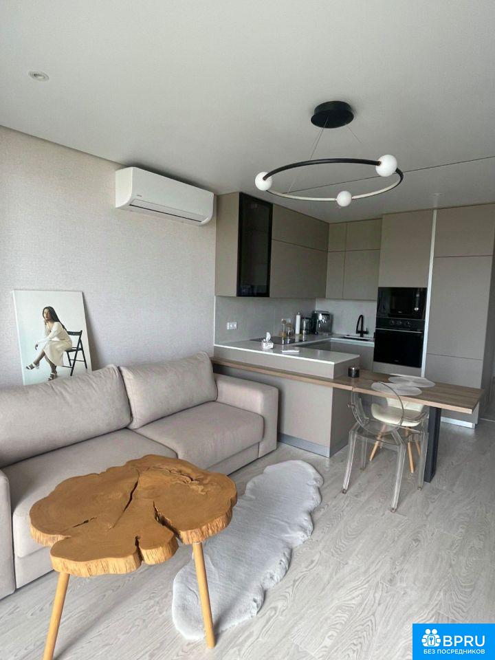 Уютная светлая студия с видом на море в районе Ботанического сада в ЖК Ренессанс. Свежий ремонт, квартиру делали под себя. Спальня отгорожена стеклянными перегородками, имеется две гардеробной: одна в спальне и другая, как отдельная комната. Кондиционер, посудомойка, телевизор, стиральная машина. Установлены теплые полы по всей квартире, кроме коридора, а также дополнительный обогреватель на балконе. На кухне установлен измельчитель отходов. Квартира солнечная, светлая, много зеркал, современный ремонт в стиле Pinterest. 19 этаж, утепленная лоджия, вид на море. Тихие соседи, двор без машин. Так же есть парковочное место на многоуровневой парковке. Охраняемая территория, двор без машин. На территории есть массажный салон, два магазина, магазин Дилан, а также детский сад и своя автомобильная мойка. Торг уместен!