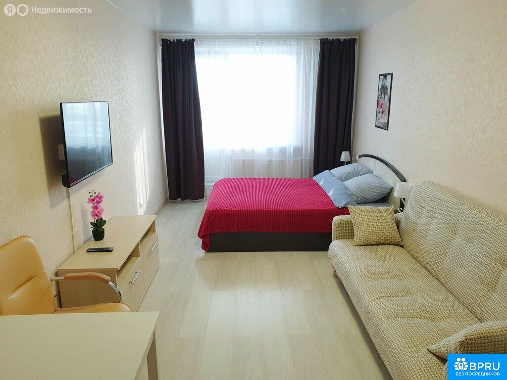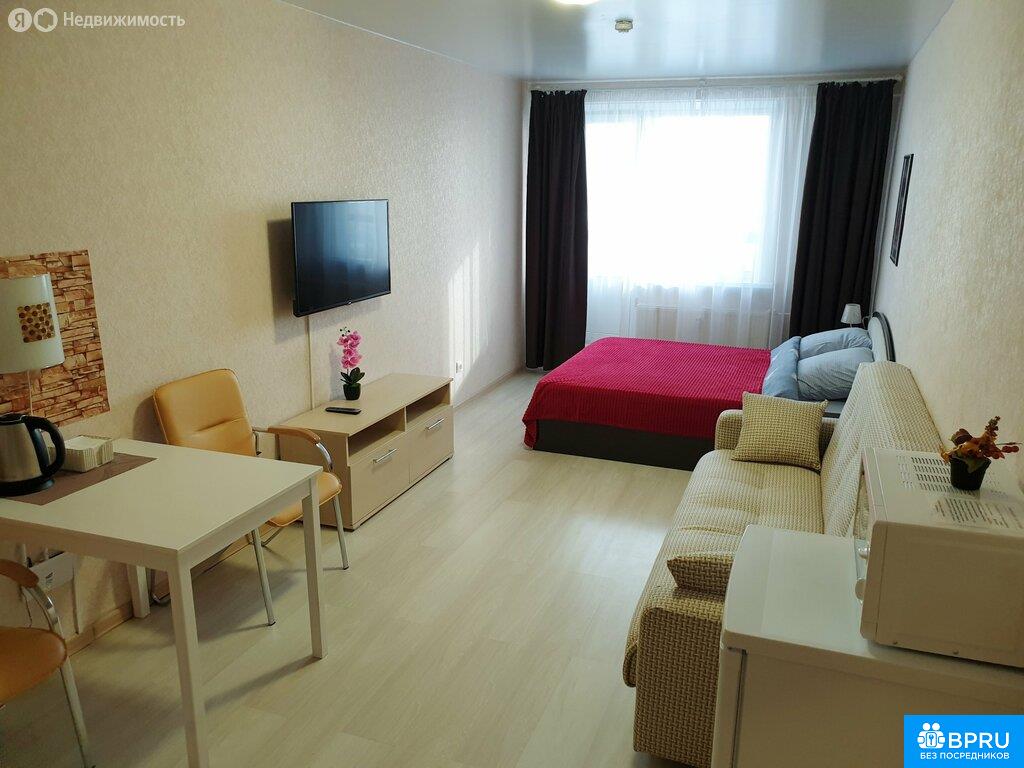 Сдаётся квартира-студия понедельно, помесячно в новом 16 ти этажном доме. Есть всё для комфортного размещения 1- 2 человек. Большой плоский телевизор, 100 тв каналов, быстрый Wi-Fi, большая двуспальная кровать, диван, микроволновка, стиралка, утюг итд. Отличный панорамный вид с лоджии ! Под окнами большая парковка, рядом супермаркеты, автобусная остановка и ресторан. Все коммунальные расходы уже включены в стоимость! Не сдаём для проведения праздников и вечеринок. Добро пожаловать !