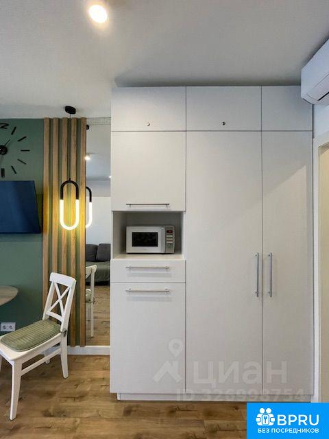 Сдаётся стильная студия с дизайнерским ремонтом в монолитно-кирпичном доме 2023 года постройки. Кухонная зона оборудована современной техникой: холодильник с морозилкой индукционная плита вытяжка микроволновая печь посудомоечная машина В комнате установлено: кондиционер телевизор бризер Теон wi-fi Мебелировка; вместительный шкаф удобная кровать-трансформер с двуспальным ортопедическим матрасом удобный диван Обеденная зона с круглым столиком и двумя стульями Санузел совмещённый, облицован плиткой и керамогранитом, оснащён душевой кабиной с тесмостатическим смесителем. Есть полотенцесушитель, фен, стиральная машина, водонагреватель, гигиенический душ, датчик протечки воды. В прихожей удобная зона для раздевания и хранения. Подключена пожарно-охранная сигнализация. В квартире есть маленький балкон с видом на двор.Дом расположен в районе с развитой инфраструктурой. Курение запрещено! Залог составляет 35000 рублей. Коммунальные услуги оплачиваются арендатором по счётчикам.