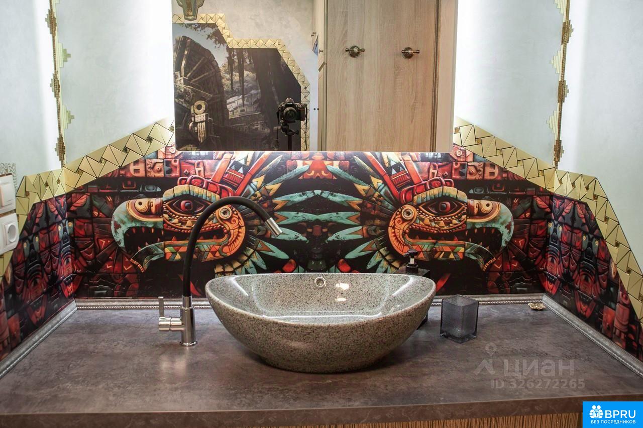 Сдается на длительный срок уютная 2-х комнатная квартира с большой кухней-гостиной (евротрешка) 91,6 м2 в центре города. Расположение 20-ти квартирного дома (2 квартиры на этаже) на второй линии проспекта Ленина существенно снижает уровень шума, оставляя доступность магазинов, аптек и прочих объектов городской инфраструктуры (до ближайшего детского сада 5 минут ходьбы, до школы 9). Пешая прогулка до Волжской набережной займет 13 минут, до исторического центра города 25. Территория дома огорожена шлагбаумом, парковочное место обеспечено. Квартира теплая, дополнительно звукоизолирована, оснащена в каждой комнате плоскими настенными блоками сплит-системы кондиционирования и состоит из: 1) кухни-гостиной (24 м2), выполненной в голубых тонах с зеркальным ламинатом и электрическим теплым полом в зоне кухни, оснащенной современных кухонным гарнитуром с подсветкой и доводчиками и встроенной техникой (газовая варочная поверхность, вытяжка, электрический духовой шкаф, посудомоечная машина, микроволновка, система фильтрации питьевой воды (осмос), холодильник с морозилкой). Дополняют обстановку удобный раскладной диван (160х200), большой дугообразный телевизор, подключенный к спутниковой тарелке и wi-fi, и обеденная группа на 4-х человек с раскладным столом. Фотоштору при желании можно снять. 2) большой спальни (20 м2), выполненной в средневековом стиле, со сводчатым потолком, кроватью 160х210, под которой расположена система хранения из ящиков с доводчиками, телевизором 55 дюймов за гобеленом. 3) большого балкона (5,6 м2) со входом из большой спальни, в котором расположен кабинет. Балкон хорошо утеплен, оснащен электрическим теплым полом, складным рабочим столом и офисным креслом. На окнах фото-жалюзи и плотные шторы от солнца. 4) малой спальни (17м2), выполненной в стиле фэнтези с фотообоями и зеркальной стеной, светильниками в форме птиц, раскладным диваном (120х200), встроенным шкафом из бамбука и швейцарской пробки, имитирующей траву, на полу. 5) малого балкона (4,3 м2) со входом из малой спальни, утепленного с электрическим теплым полом и отделкой цветочным орнаментом. 6) большого санузла (7,3 м2), выполненного в стиле майя/ацтеков, в котором расположена большая ванна, стиральная машина и большой шкаф для хранения, водопад и система фильтрации входящей воды. 7) малого санузла (3,4 м2), выполненного в стиле пиратского батискафа, с видеорядом подводного мира в иллюминаторах, с душем и водонагревателем, подключенным ко всем точкам потребления горячей воды (на случай отключения). 8) гардеробной (7,5 м2), оснащенной закрытой системой хранения, где расположены Wi-fi роутер, пылесос, гладильная доска, утюг, швабра и пр. 9) коридора (11 м2), выполненного в египетском стиле с большим шкафом и электрическим теплым полом во входной зоне.