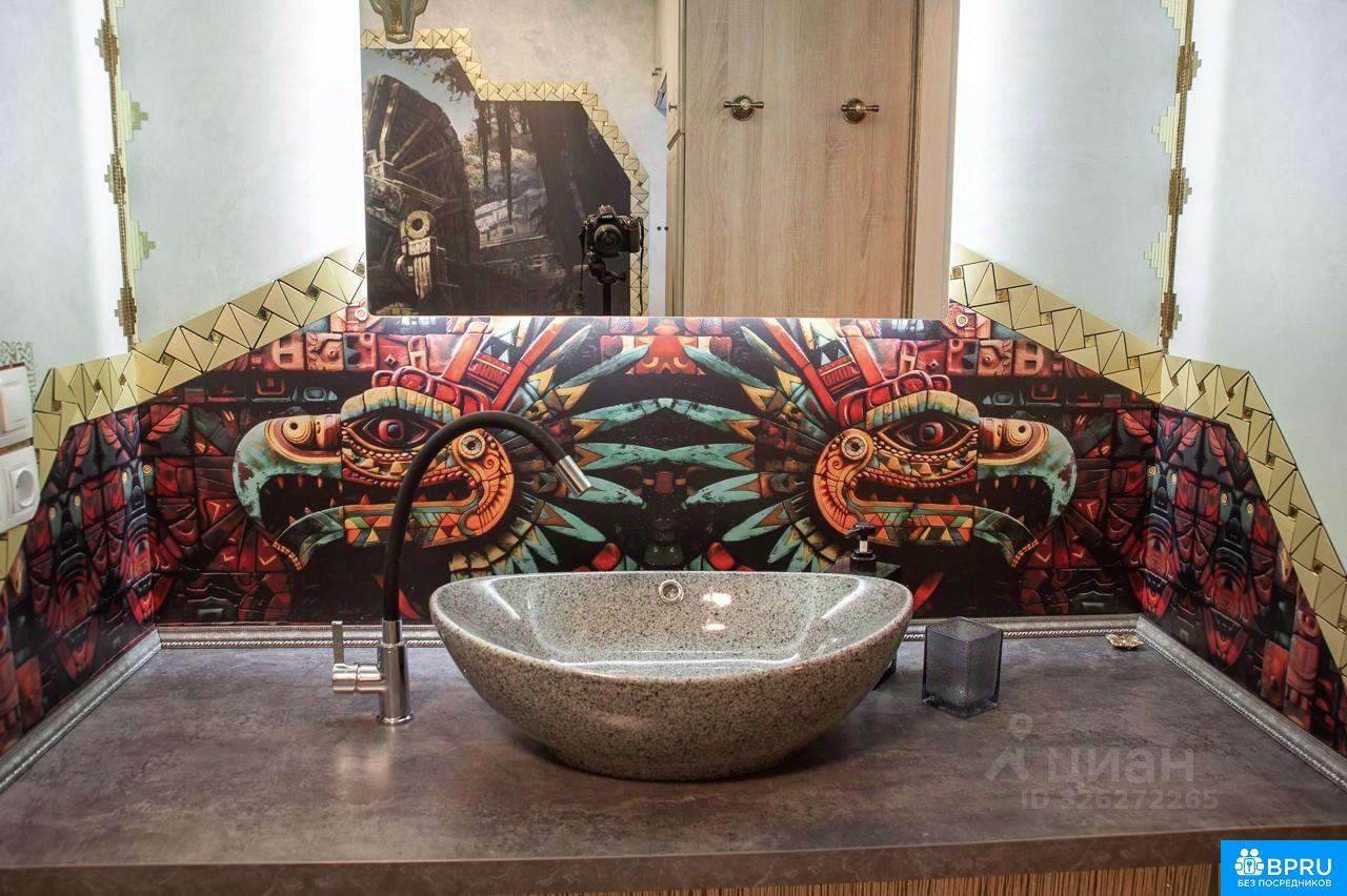 Сдается на длительный срок уютная 2-х комнатная квартира с большой кухней-гостиной (евротрешка) 91,6 м2 в центре города. Расположение 20-ти квартирного дома (2 квартиры на этаже) на второй линии проспекта Ленина существенно снижает уровень шума, оставляя доступность магазинов, аптек и прочих объектов городской инфраструктуры (до ближайшего детского сада 5 минут ходьбы, до школы 9). Пешая прогулка до Волжской набережной займет 13 минут, до исторического центра города 25. Территория дома огорожена шлагбаумом, парковочное место обеспечено. Квартира теплая, дополнительно звукоизолирована, оснащена в каждой комнате плоскими настенными блоками сплит-системы кондиционирования и состоит из: 1) кухни-гостиной (24 м2), выполненной в голубых тонах с зеркальным ламинатом и электрическим теплым полом в зоне кухни, оснащенной современных кухонным гарнитуром с подсветкой и доводчиками и встроенной техникой (газовая варочная поверхность, вытяжка, электрический духовой шкаф, посудомоечная машина, микроволновка, система фильтрации питьевой воды (осмос), холодильник с морозилкой). Дополняют обстановку удобный раскладной диван (160х200), большой дугообразный телевизор, подключенный к спутниковой тарелке и wi-fi, и обеденная группа на 4-х человек с раскладным столом. Фотоштору при желании можно снять. 2) большой спальни (20 м2), выполненной в средневековом стиле, со сводчатым потолком, кроватью 160х210, под которой расположена система хранения из ящиков с доводчиками, телевизором 55 дюймов за гобеленом. 3) большого балкона (5,6 м2) со входом из большой спальни, в котором расположен кабинет. Балкон хорошо утеплен, оснащен электрическим теплым полом, складным рабочим столом и офисным креслом. На окнах фото-жалюзи и плотные шторы от солнца. 4) малой спальни (17м2), выполненной в стиле фэнтези с фотообоями и зеркальной стеной, светильниками в форме птиц, раскладным диваном (120х200), встроенным шкафом из бамбука и швейцарской пробки, имитирующей траву, на полу. 5) малого балкона (4,3 м2) со входом из малой спальни, утепленного с электрическим теплым полом и отделкой цветочным орнаментом. 6) большого санузла (7,3 м2), выполненного в стиле майя/ацтеков, в котором расположена большая ванна, стиральная машина и большой шкаф для хранения, водопад и система фильтрации входящей воды. 7) малого санузла (3,4 м2), выполненного в стиле пиратского батискафа, с видеорядом подводного мира в иллюминаторах, с душем и водонагревателем, подключенным ко всем точкам потребления горячей воды (на случай отключения). 8) гардеробной (7,5 м2), оснащенной закрытой системой хранения, где расположены Wi-fi роутер, пылесос, гладильная доска, утюг, швабра и пр. 9) коридора (11 м2), выполненного в египетском стиле с большим шкафом и электрическим теплым полом во входной зоне.