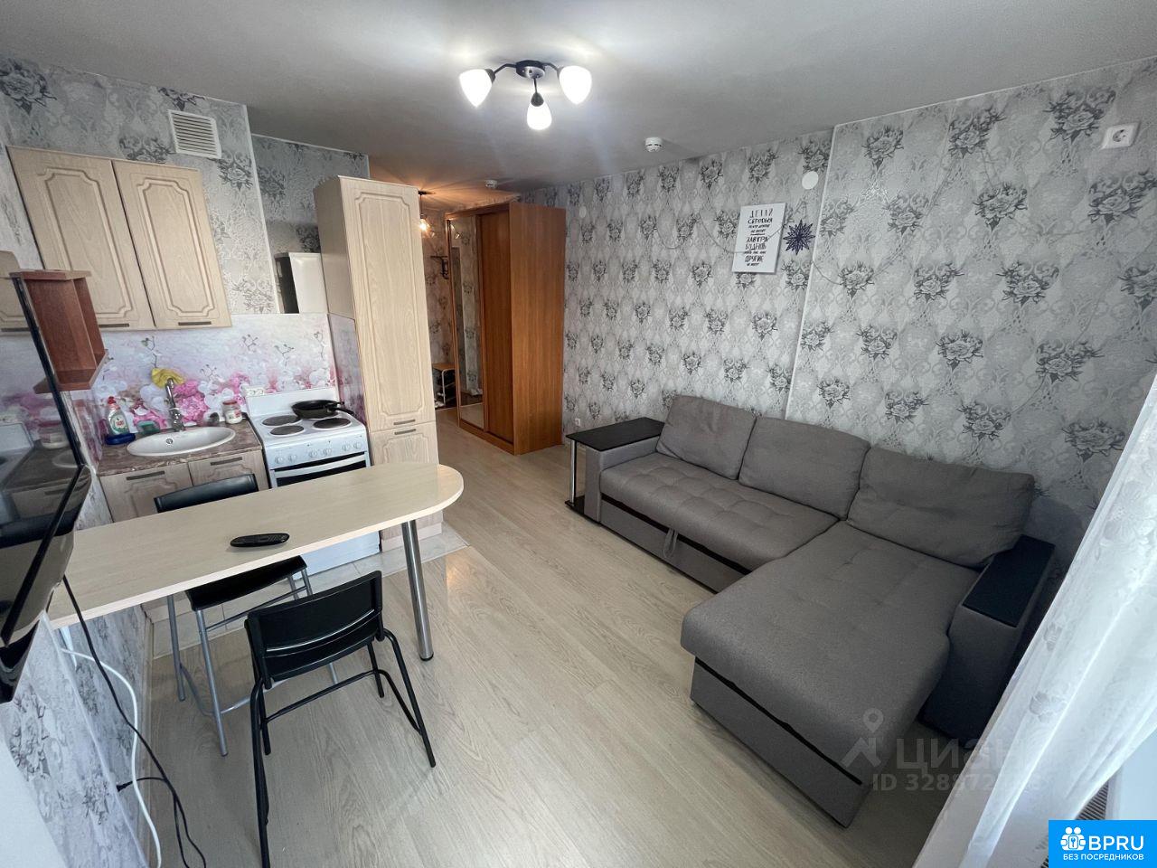 Небольшая, но аккуратная студия. Всё необходимое для комфортного проживания есть. Чисто, светло, по-домашнему. Из плюсов — удобный выезд в любую сторону. Транспортная развязка хорошая. Квартира подойдет одному человеку или паре, которые ищут спокойное место без лишнего пафоса.
