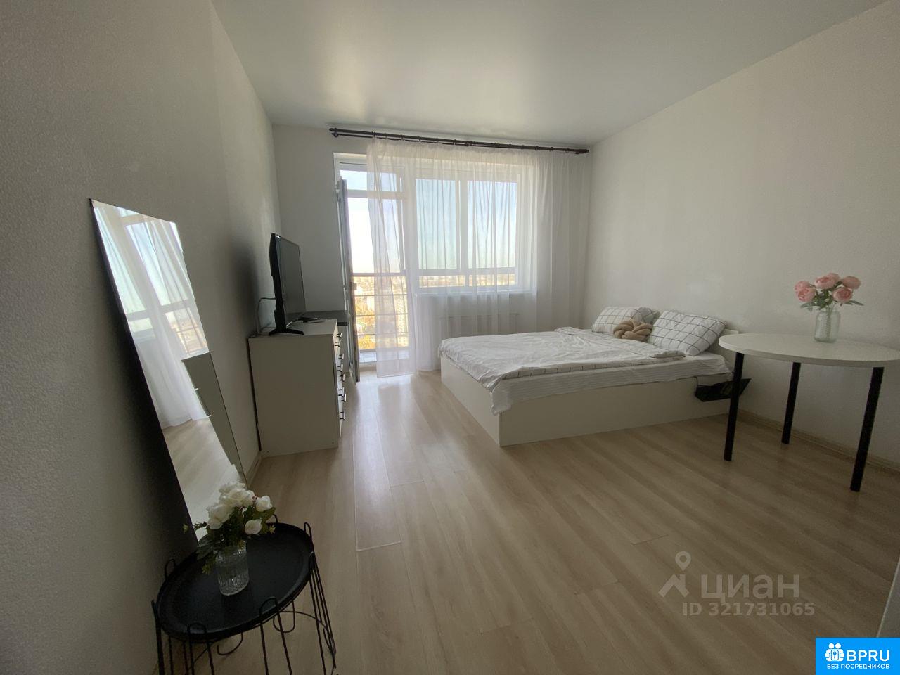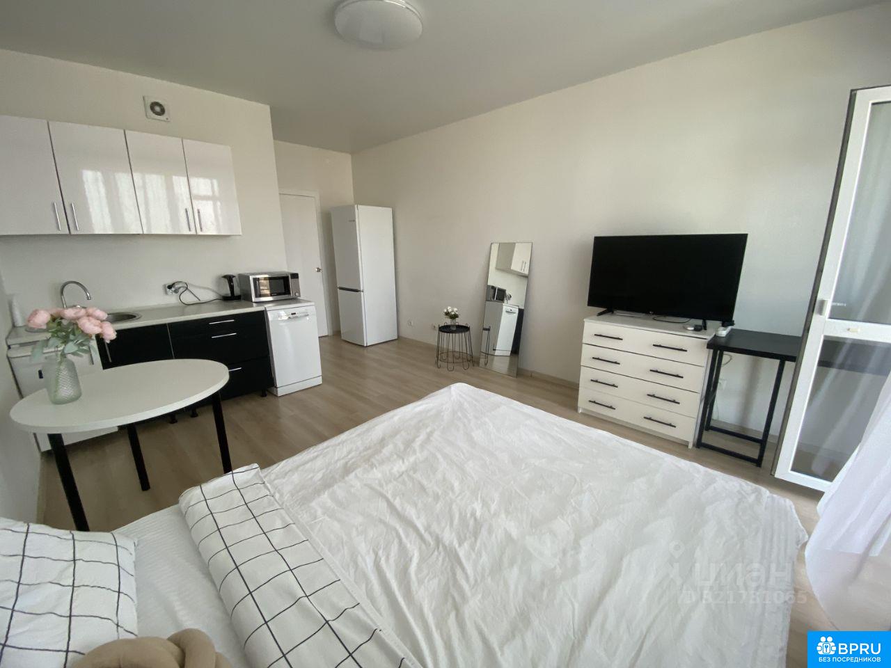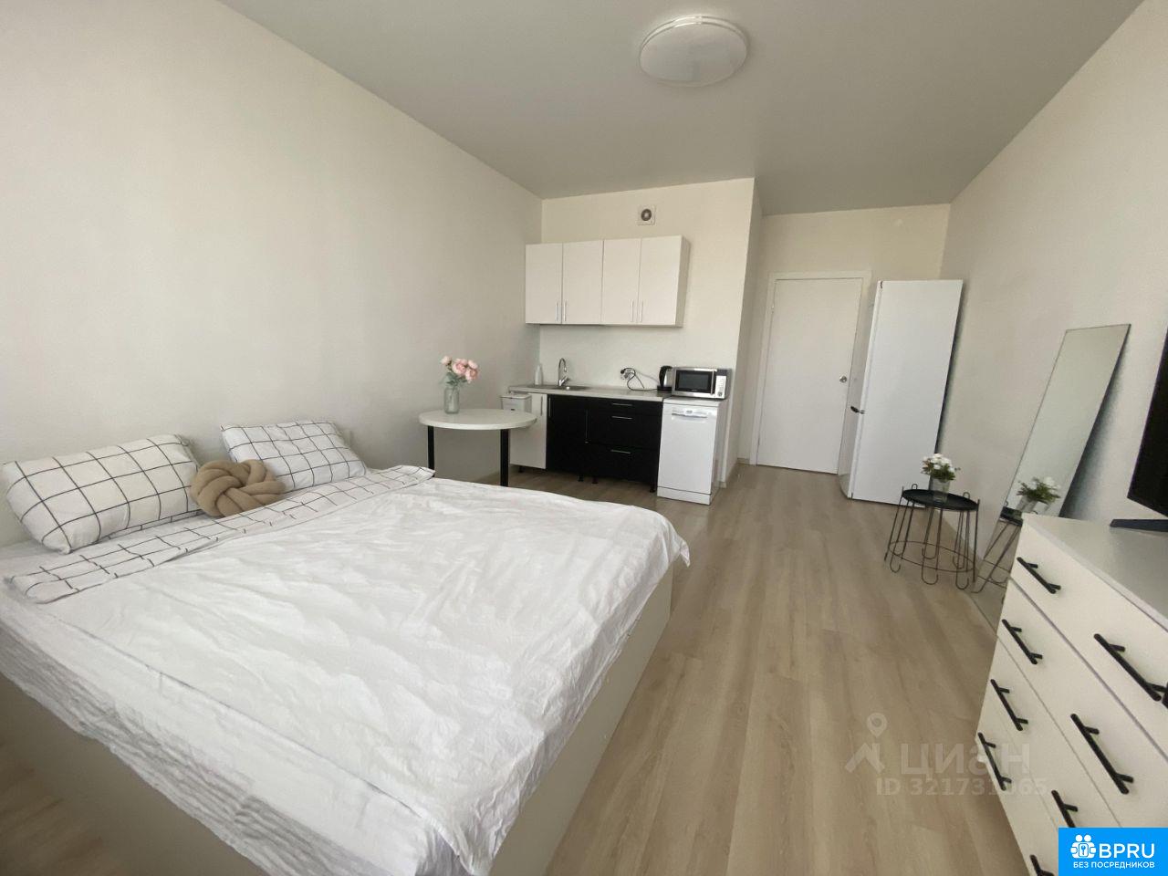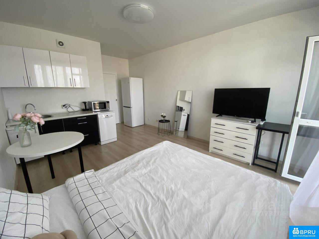 Сдаётся чистая и светлая квартира-студия с белой отделкой. Вся необходимая бытовая техника есть. Окна выходят на улицу, квартира находится на 24 этаже — из окон красивый вид. До остановки всего 8 минут пешком. Рядом много учебных заведений. Магазины и всё необходимое — в шаговой доступности. В стоимость аренды не входит оплата ЖКХ и интернета. Аренда от одного года. Пишите/ Звоните, чтобы посмотреть квартиру и договориться обо всём.