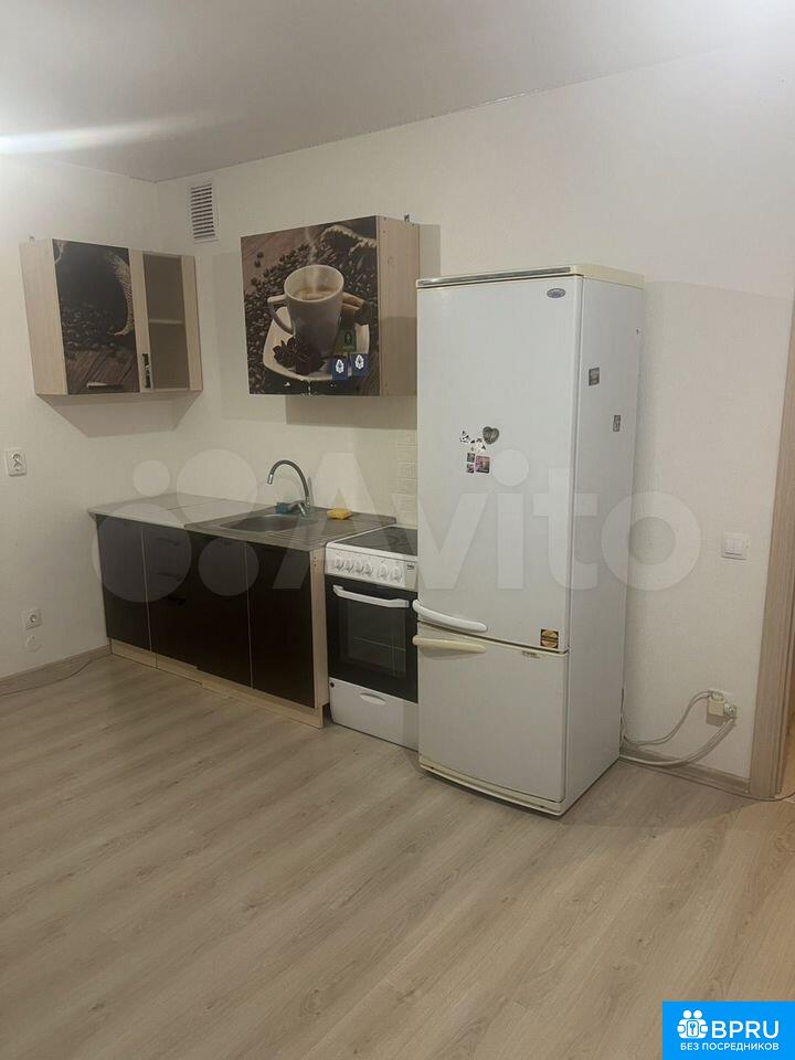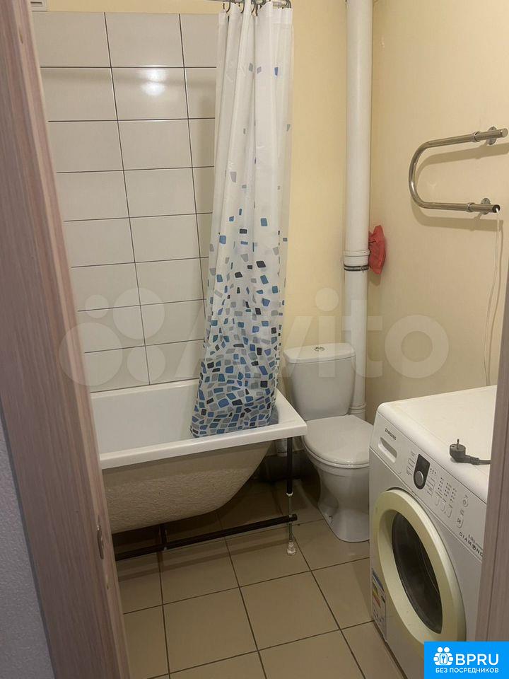 В студии имеется диван, кухонный гарнитур, плита, стол, стулья, холодильник, стиральная машинка. Рядом с домом магазины, аптеки, школа, садик, остановки для общественного транспорта.