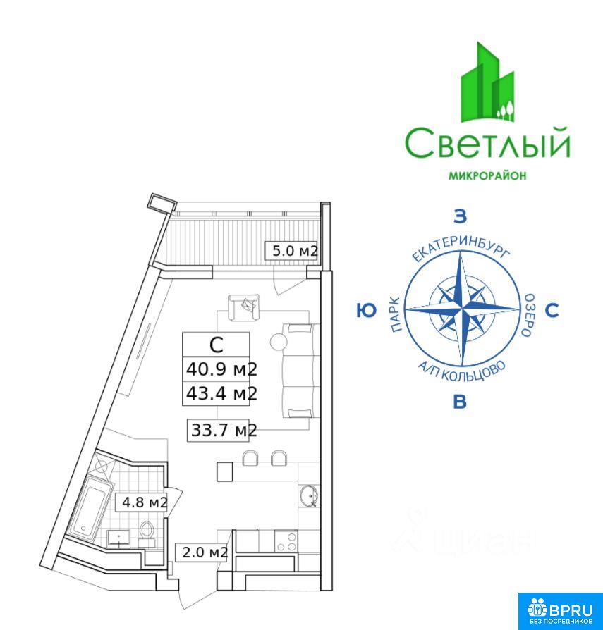 Сдается однокомнатная квартира-студия в ЖК Светлый. Собственник. Дом 5, секция 4 (ближе к лесу), этаж 9. Удобный заезд и выезд через Кольцовский тракт или мкр Уктус. Рядом лесопарк, Нижне-Исетский пруд и комплекс Рамада. На территории ЖК находится остановка автобусного маршрута 083, наземный охраняемый паркинг, магазины, детские и спортивные площадки, хоккейный корт. Квартира просторная, с современным ремонтом и большой лоджией. Красивый вид из окна. В ЖК своя газовая котельная. Установлены квартирные счетчики на электроэнергию, тепло и водоснабжение, домофон. Сдается на длительный срок, аккуратным и порядочным людям, без домашних животных. Мебель, сделанная на заказ, диван с большим спальным местом. Бытовая техника: холодильник, электроплита, микроволновка; стиральная машина. 30000 руб/мес + КУ. Депозит 30000 руб.