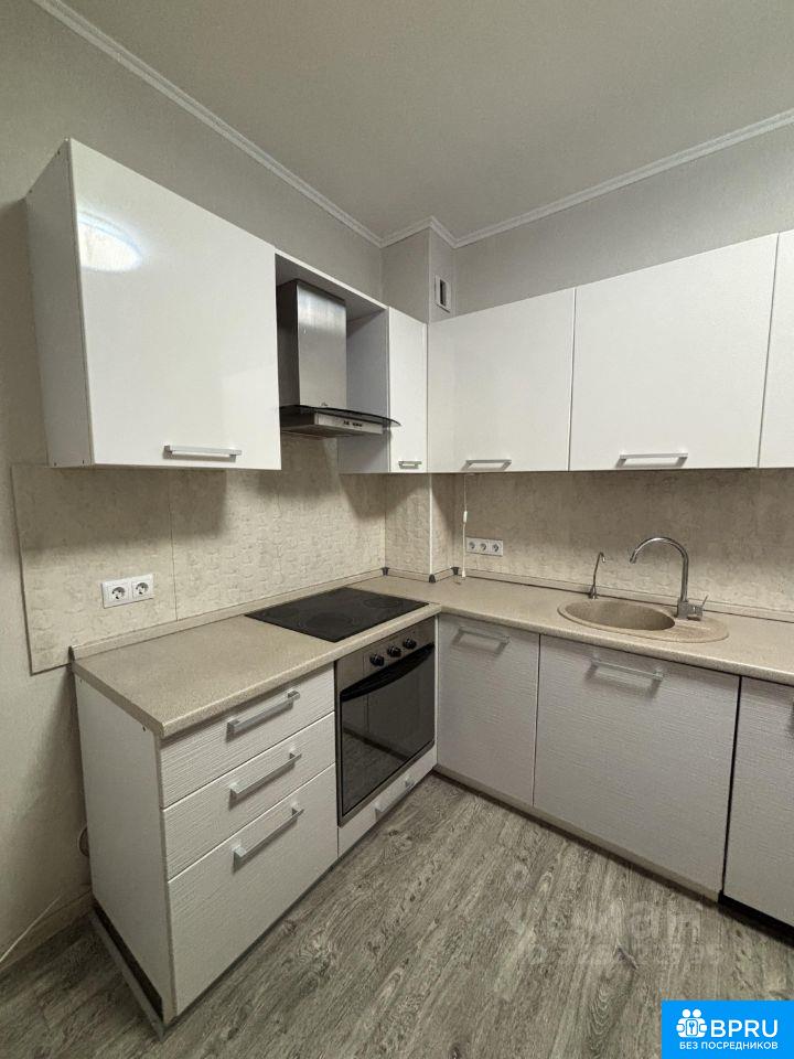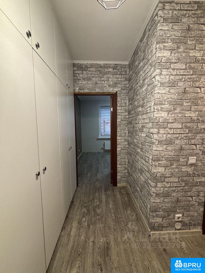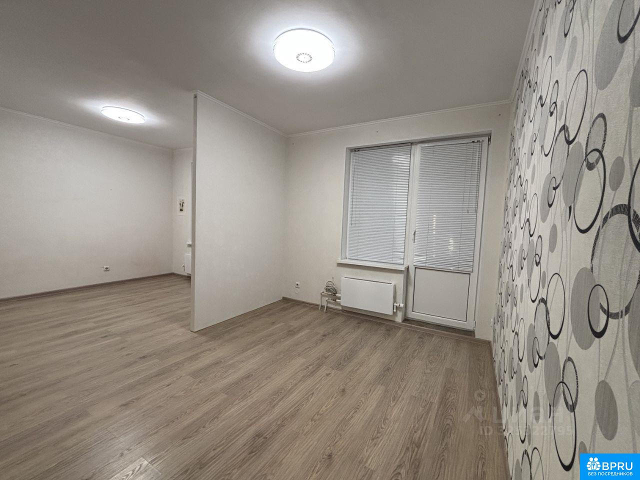 Срочно сдам большую однокомнатную квартиру. Комната частично поделена на 2. Есть кухонный гарнитур, встроенные шкафы, двуспальная кровать.
