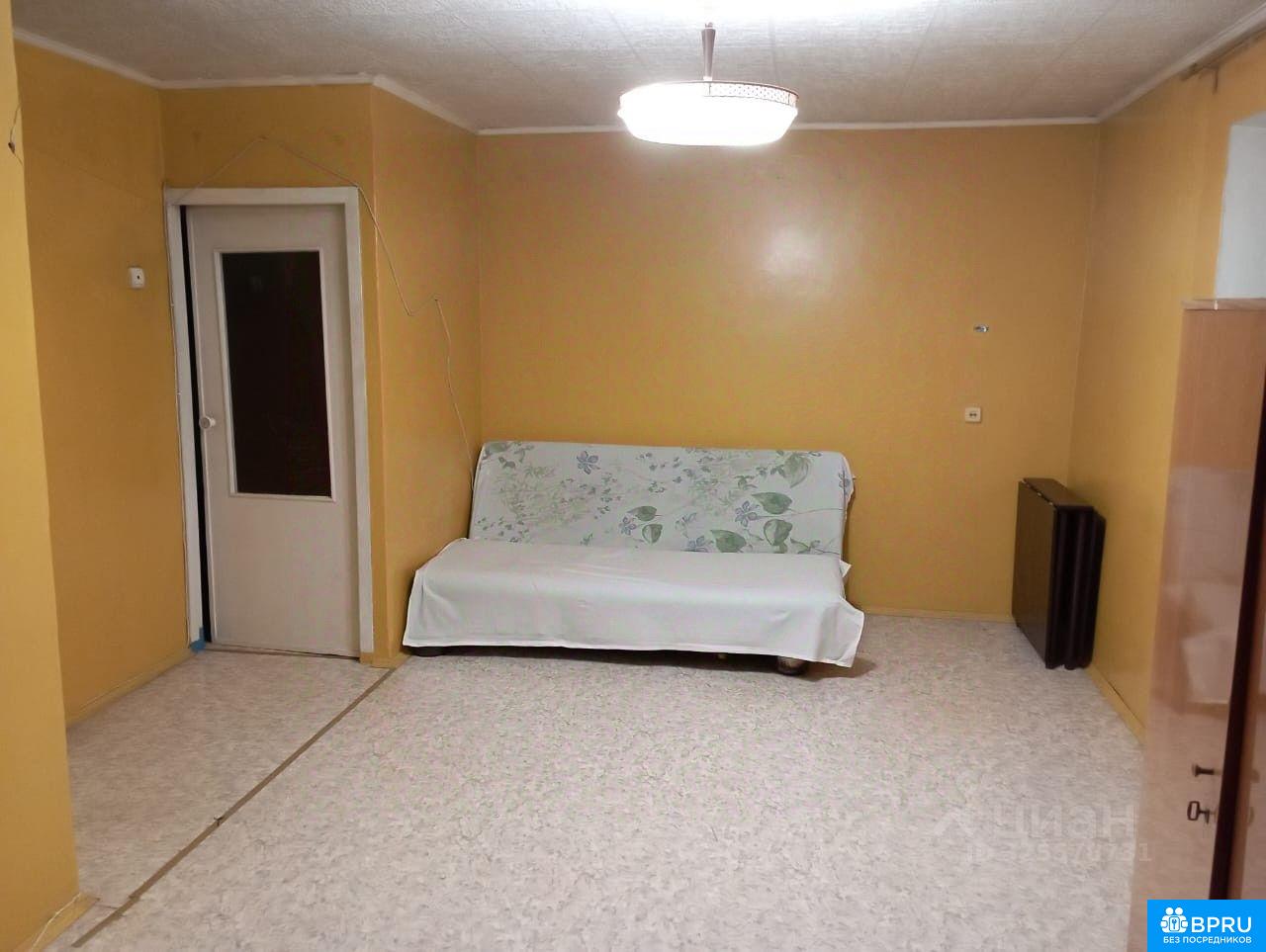 Квартира без ремонта, в зала есть старый диван и шифонер,на кухне- холодильник и газовая плита с раковиной.До метро Чкаловская идти 6- 7 минут