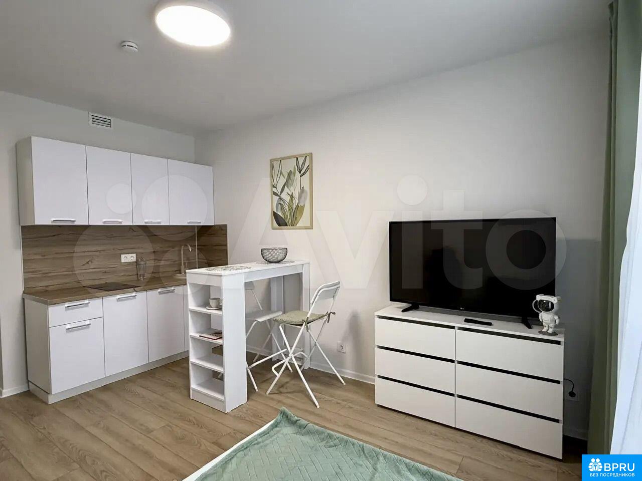 Сдается студия на 14 этаже монолитного дома 2026 года постройки. В квартире все имеется для проживания. Из техники: телевизор, плита, микроволновка, холодильник, стиральная машинка. Все НОВОЕ, в квартире вы будете первыми жителями.