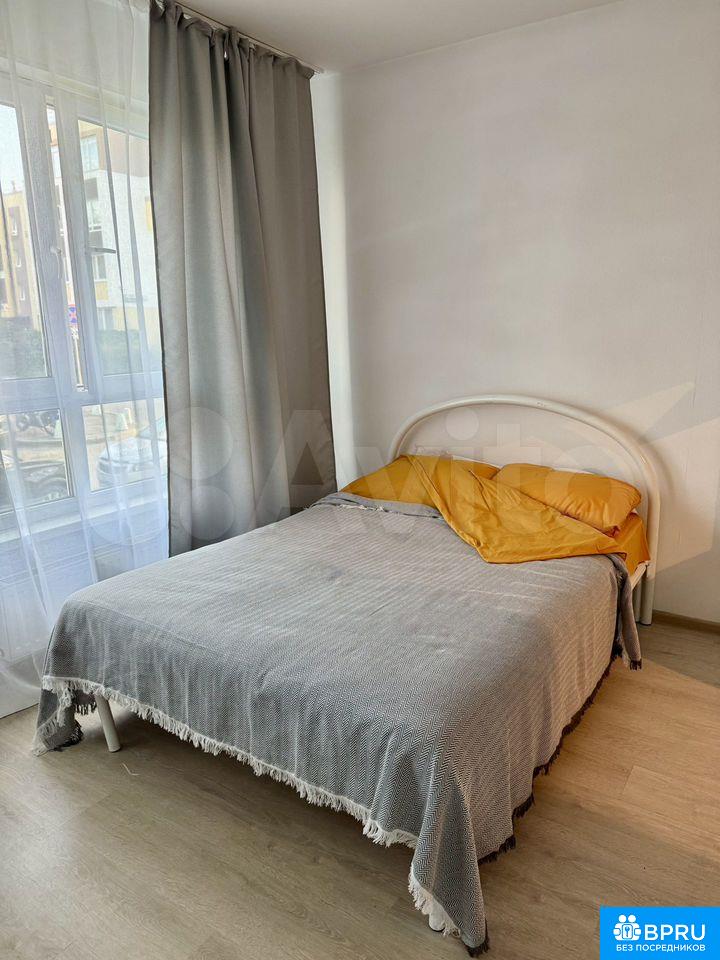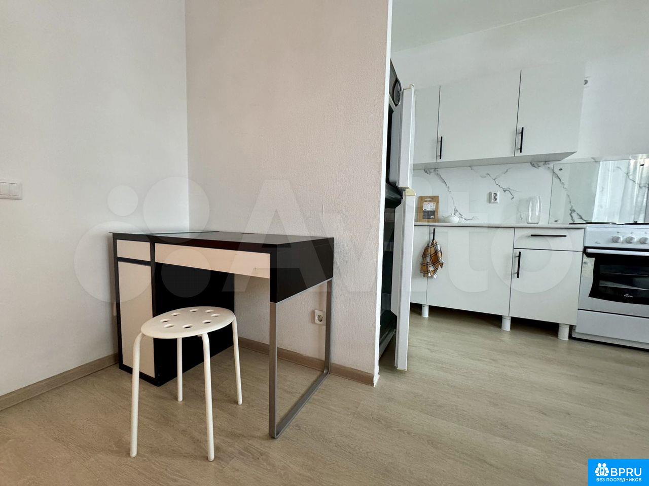 Светлая уютная студия на длительный срок! Есть все необходимое, заезжай и живи: мебель, техника, постельные принадлежности, посуда и пр. Удобная 2-спальная кровать!В шаговой доступности магазины, остановка автобуса.