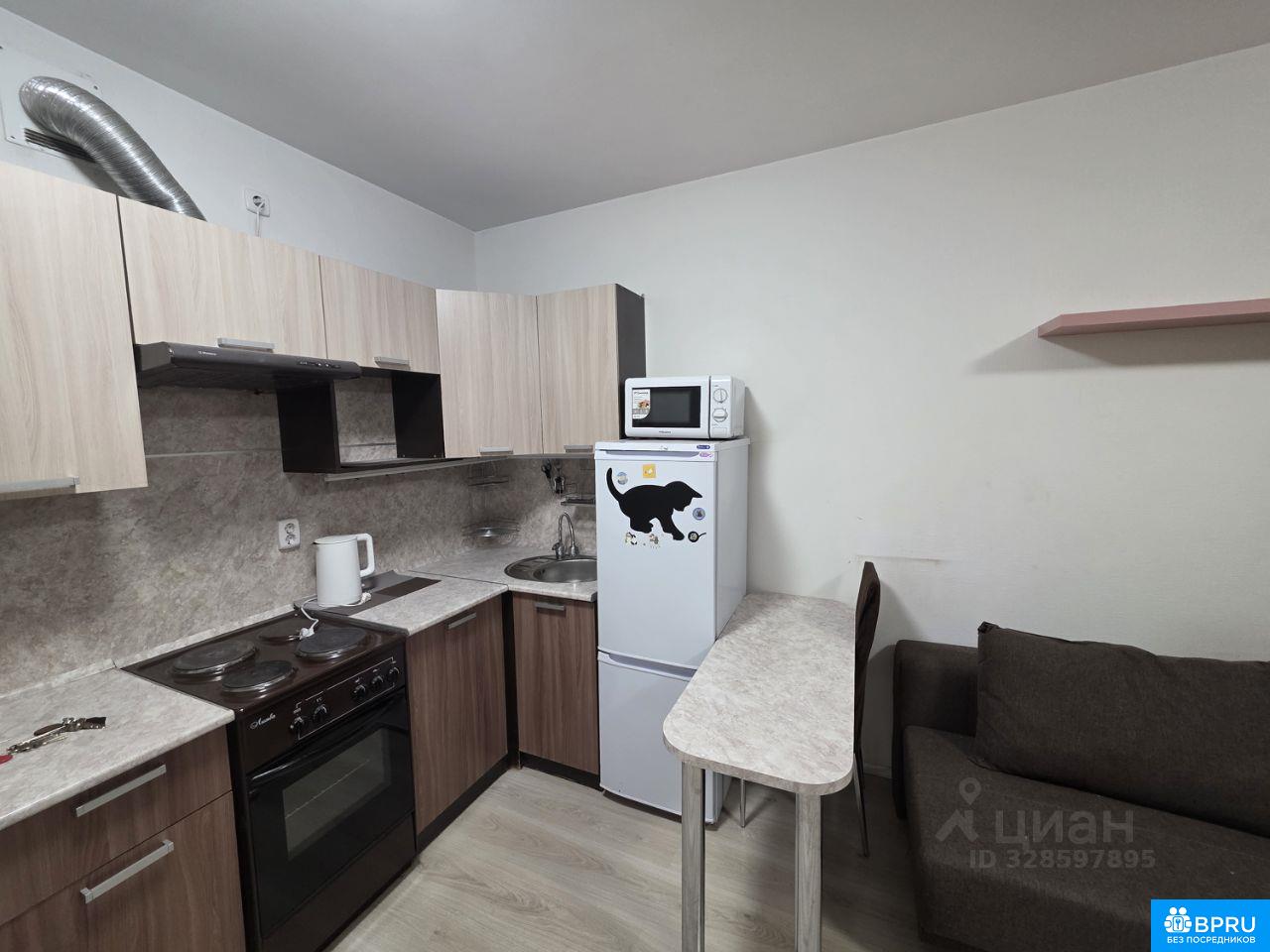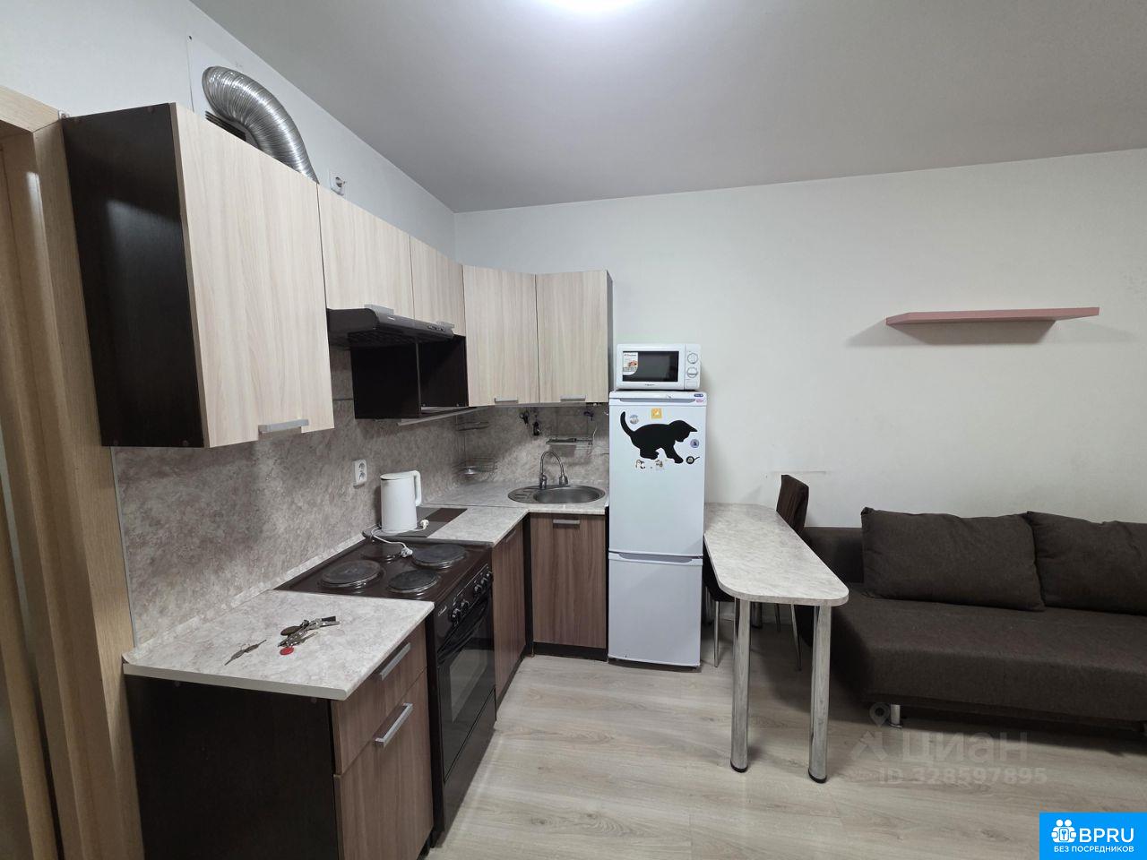 Квартира студия со всем необходимым для проживания: мебель, техника, посуда, постельные принадлежности. Окна выходят на восход. До остановки 5-10 минут.