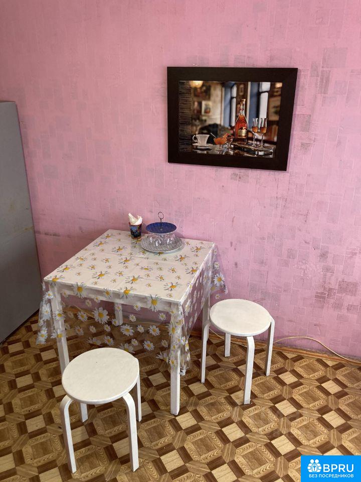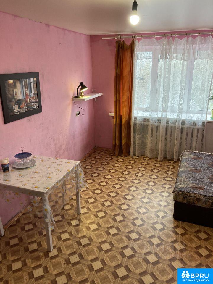 комната в общежитии коридорного типа, умывальник и душ общий, туалет совместно с другой комнатой. В секции проживают в основном семейные, требование проживания чистота тишина. В комнате большое окно, диван (раскладывается), стол стулья, шкаф, кух.закуток.