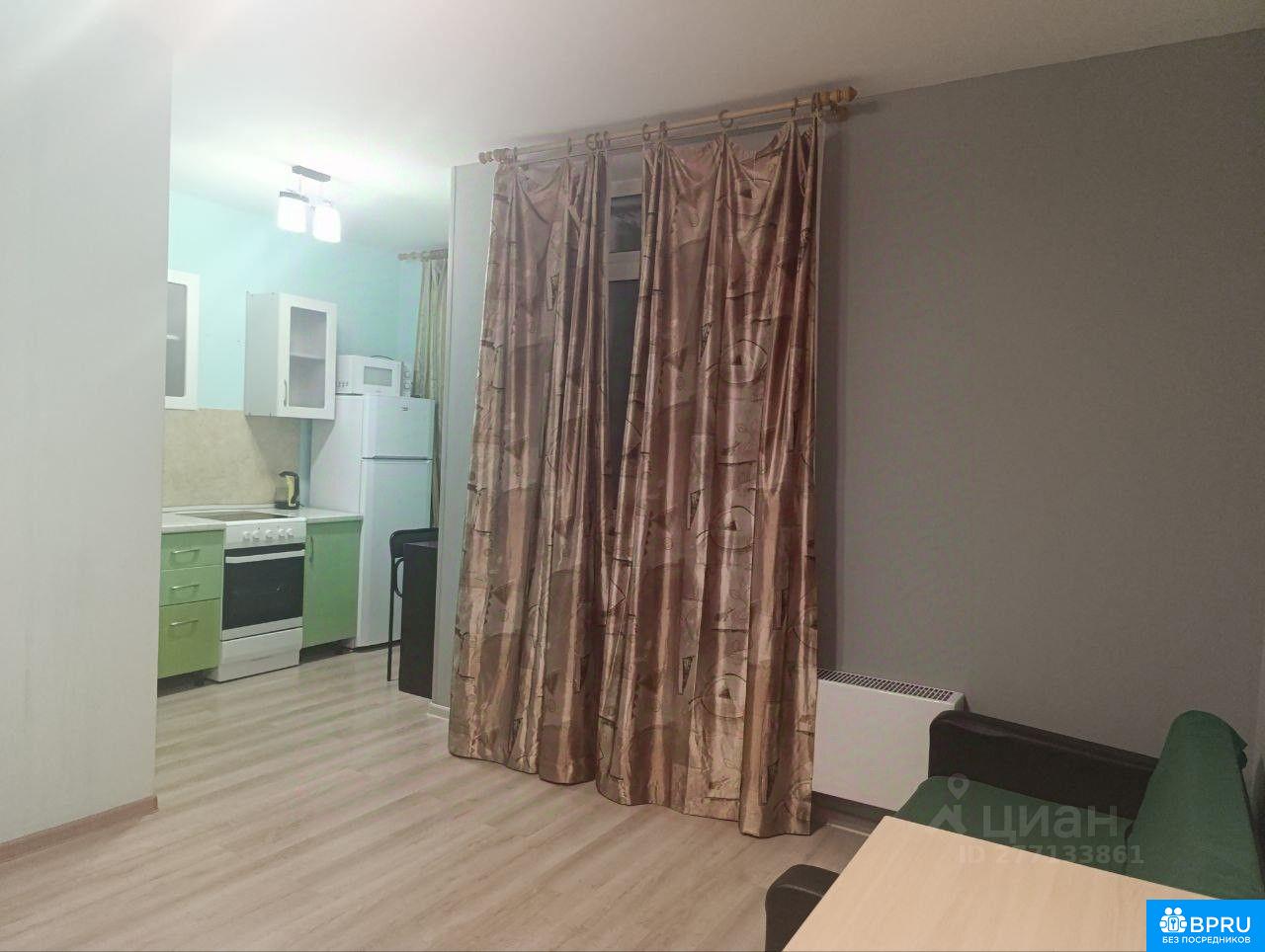 Сдается студия, есть небольшой раскладной диван из IKEA, диван спальный, стол компьютерный, водонагреватель, кухонный гарнитур с плитой, холодильник, пылесос, стиральная машина, шкаф в коридоре. Хороший вид из окон на озеро и парк, застекленная лоджия. Счетчики на все, батареи с регулировкой. Во дворе огороженная детская площадка. Охрана в подъезде, на территории дома ведется видео наблюдение. Транспорт и инфраструктура рядом.