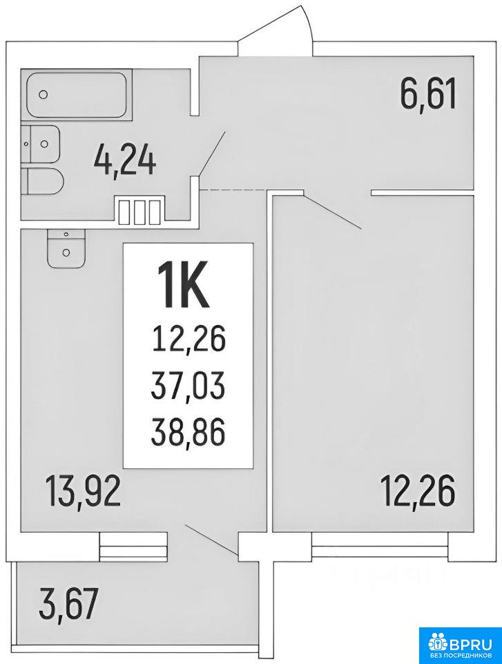 1-к квартира, 37 кв.м